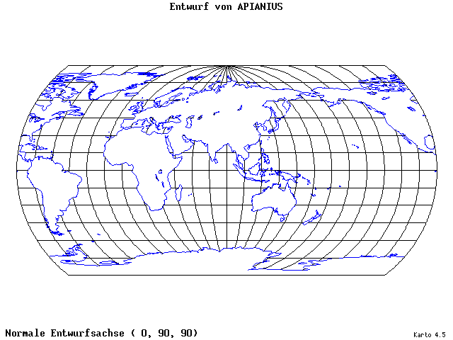 Apianius' Projection - 0°E, 90°N, 90° - wide