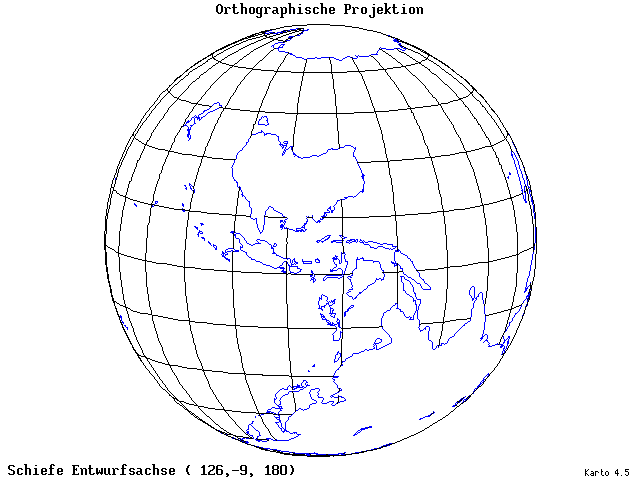 Orthographic Projection - 126°E, 9°S, 180° - standard
