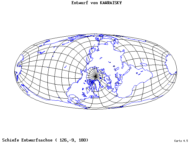 Kavraisky's Projection - 126°E, 9°S, 180° - wide