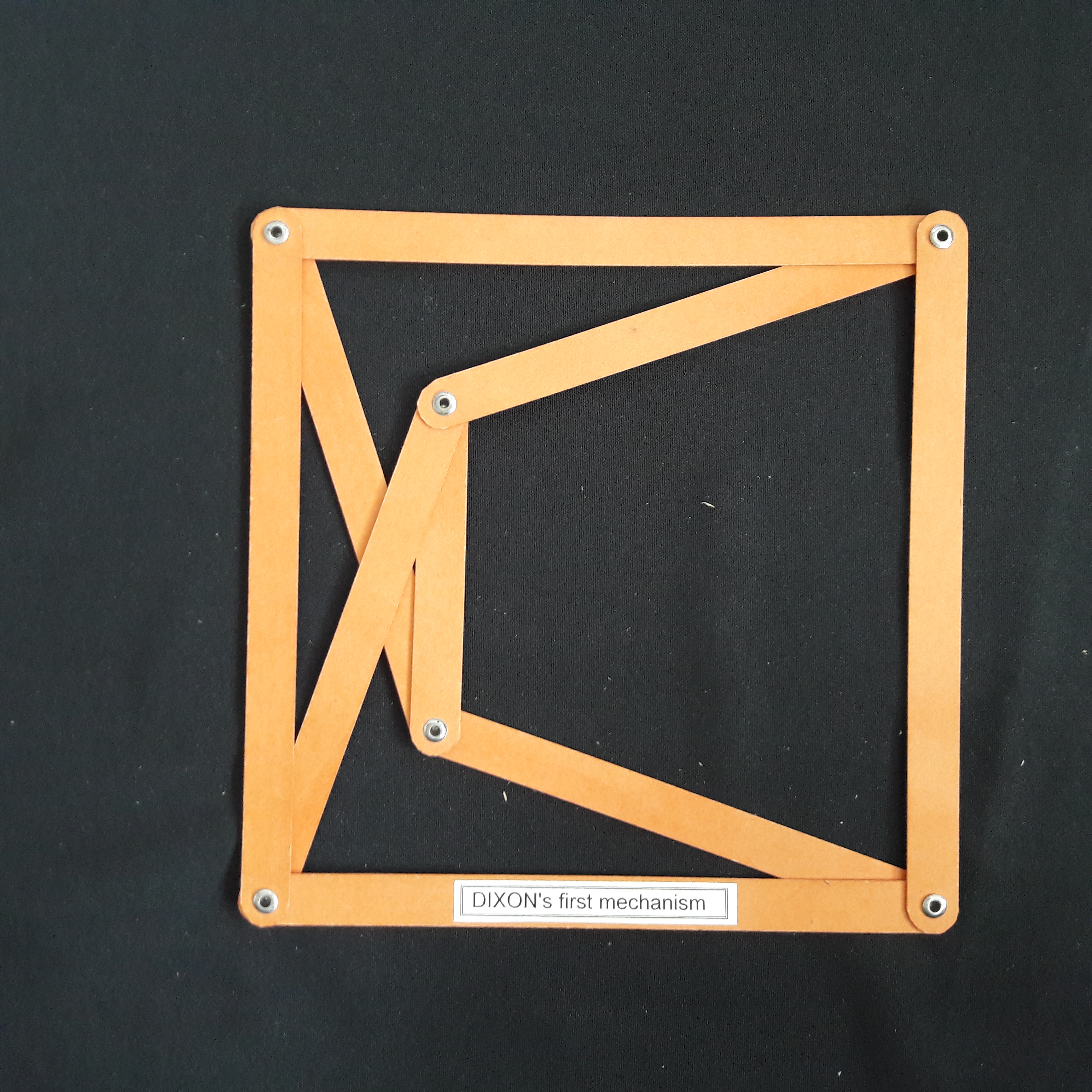 | Bewegliches Neunstabgetriebe nach DIXON. Die Knotentripel liegen auf orthogonalen Geraden. |