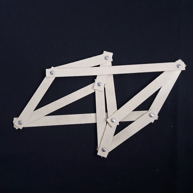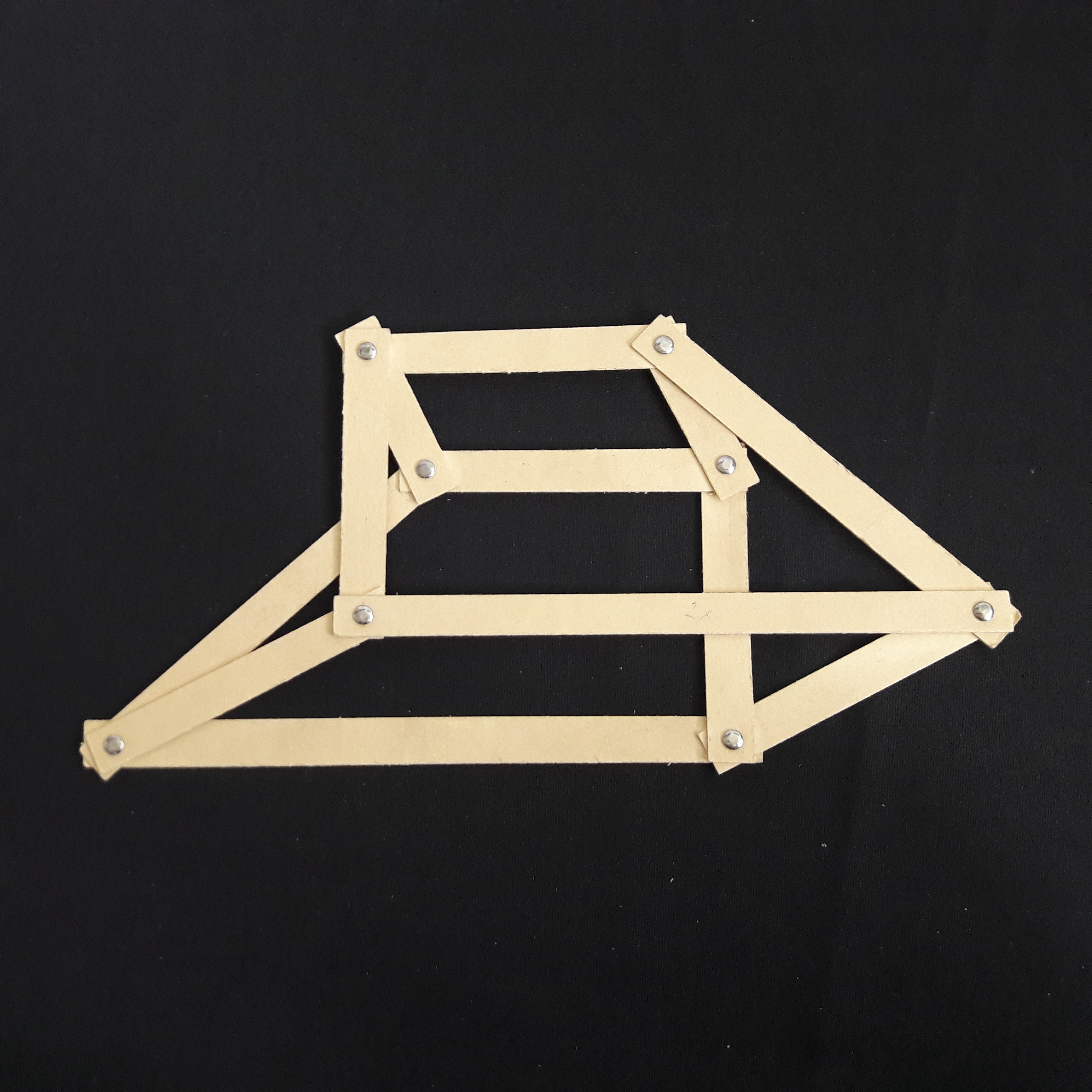 | Bewegliches Zwölfstabgetriebe. Im Gegensatz zum merkwürdigen Zwölfstabgetriebe nach WUNDERLICH existieren keine Getriebestellungen mit 2-parametriger Beweglichkeit. |