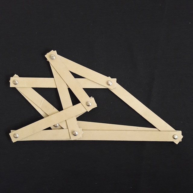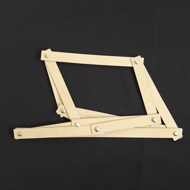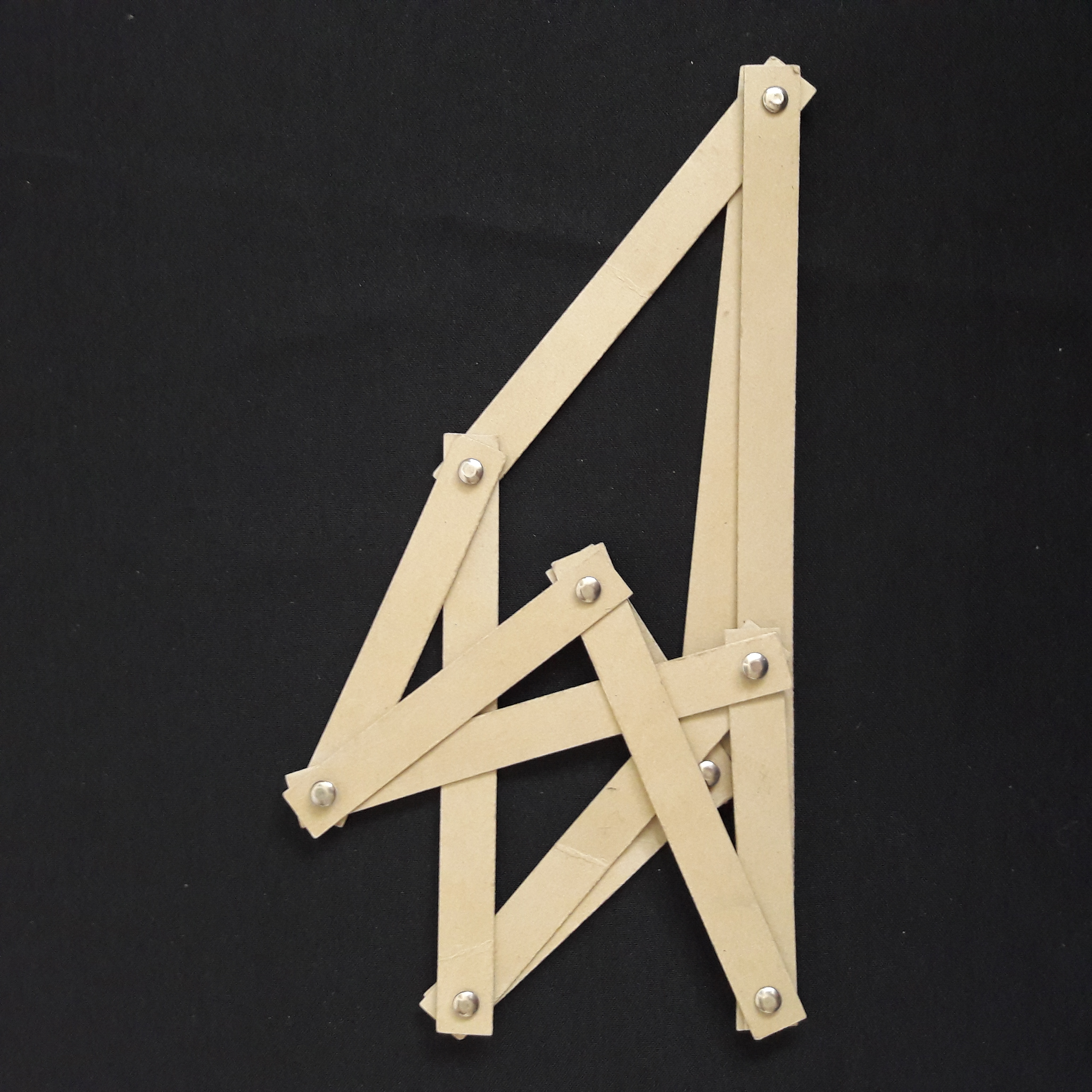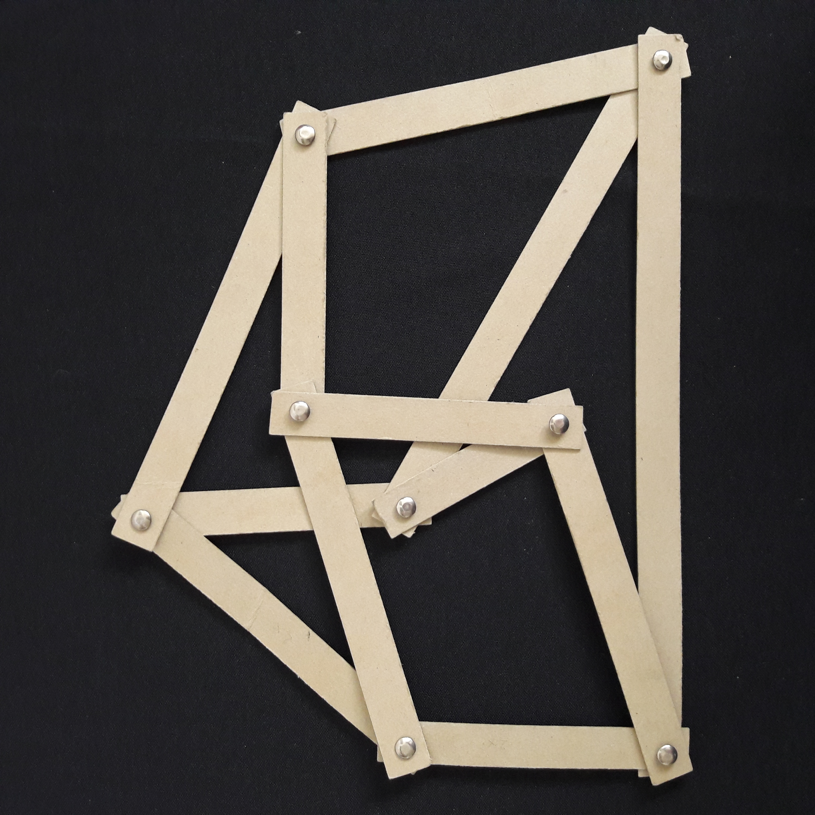 | Bewegliches Zwölfstabgetriebe. Im Gegensatz zum merkwürdigen Zwölfstabgetriebe nach WUNDERLICH existieren keine Getriebestellungen mit 2-parametriger Beweglichkeit. |