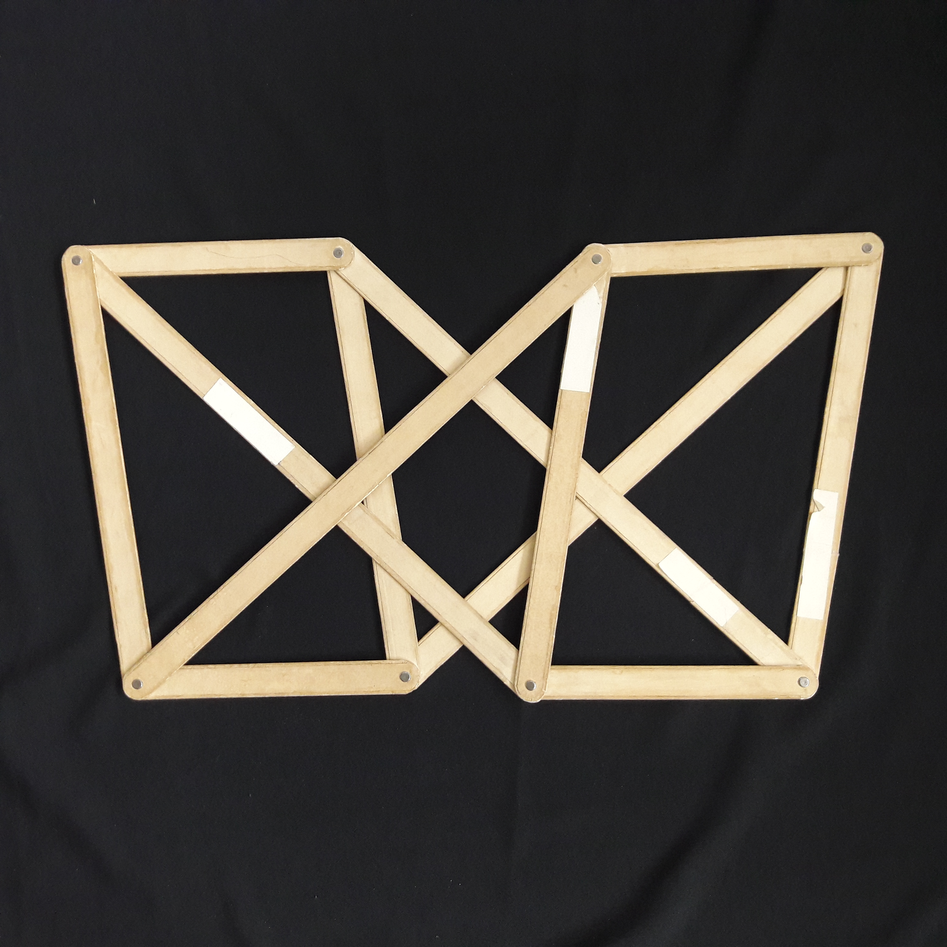 | Zwölfstabgetriebe nach WUNDERLICH, welches auch Getriebestellungen mit 2-parametriger Beweglichkeit besitzt (kinematotropischer Mechanismus). |