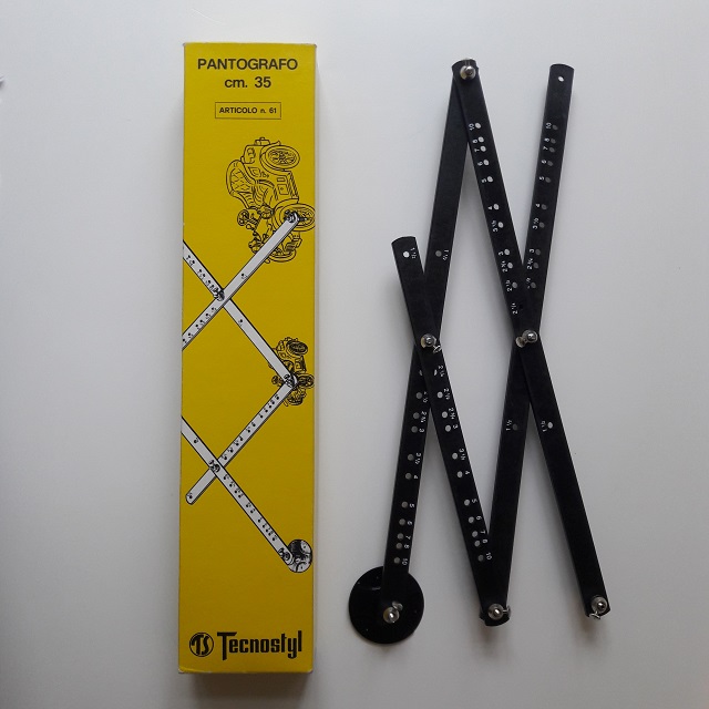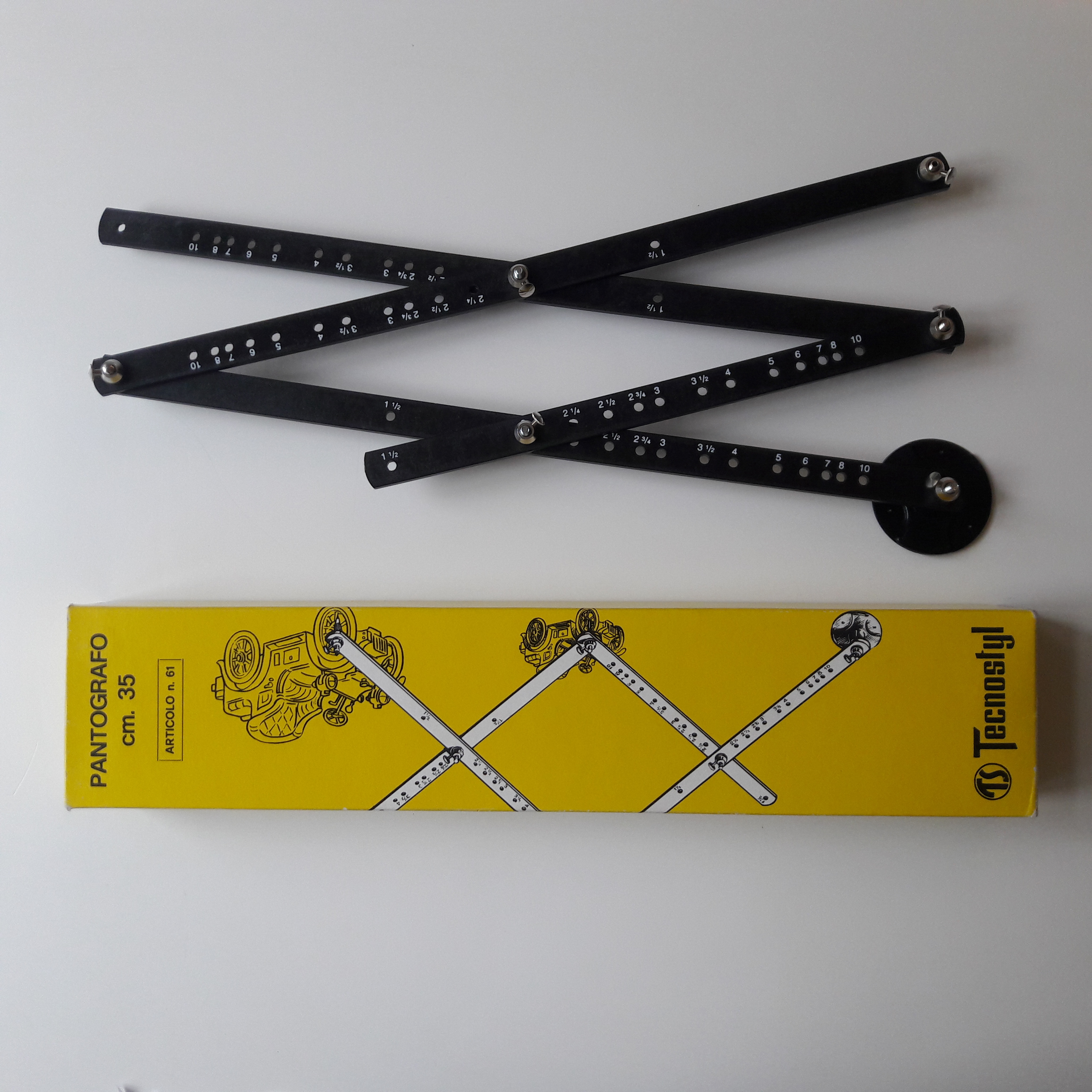 | Der Pantograph oder Storchschnabel, ist ein Spezialfall des Plagiographen von SYLVESTER und kann zur Reproduktion von Zeichnungen mit dergleichen, einer größeren oder einer kleineren Skalierung als das Original verwendet werden. Diesem Modell liegt eine englische Anleitung bei. |