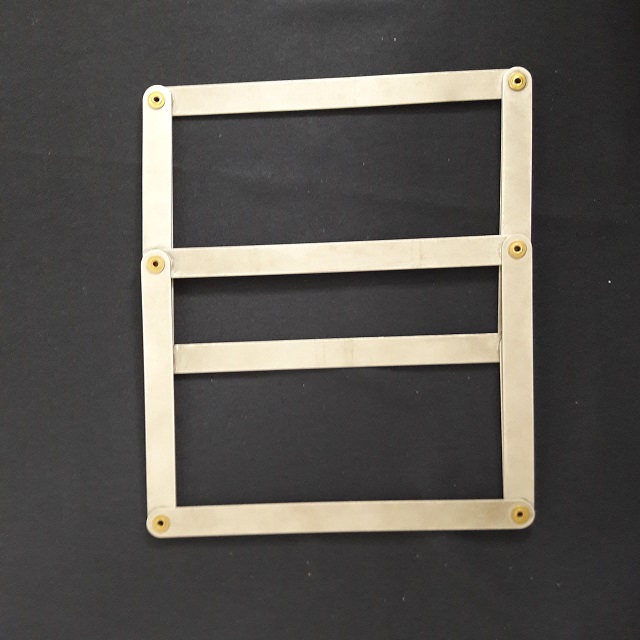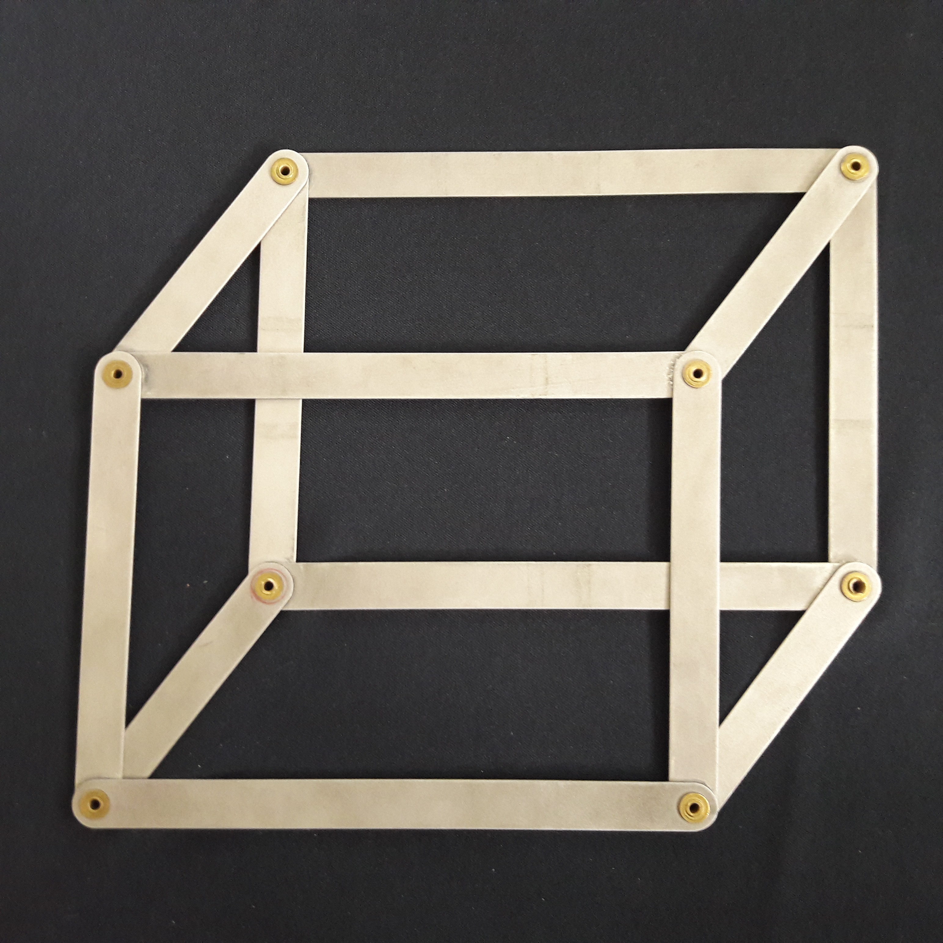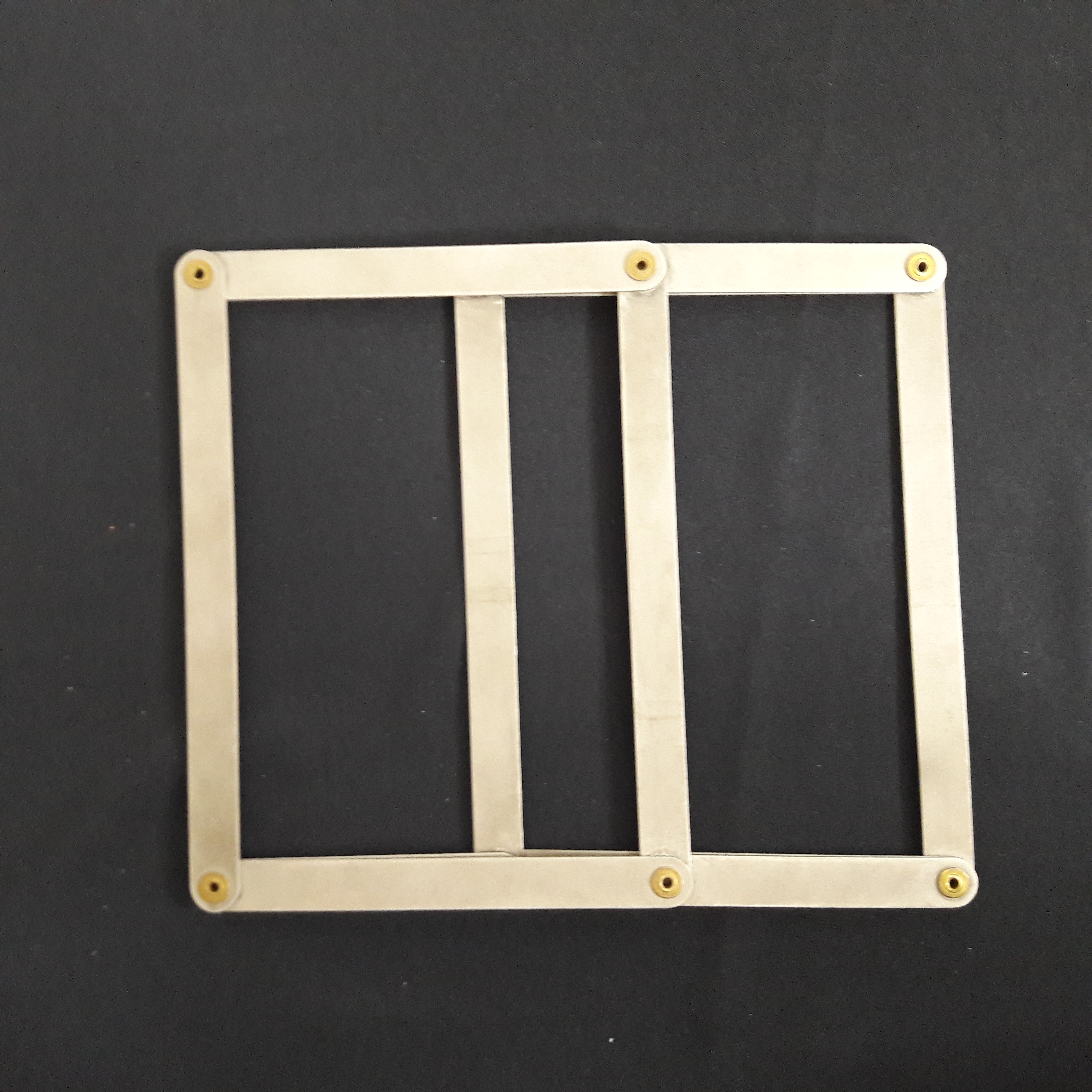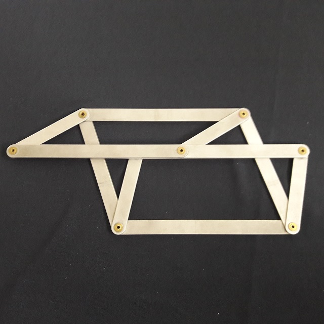 | Zwölfstabgetriebe nach WUNDERLICH, welches auch Getriebestellungen mit 2-parametriger Beweglichkeit besitzt (kinematotropischer Mechanismus). |