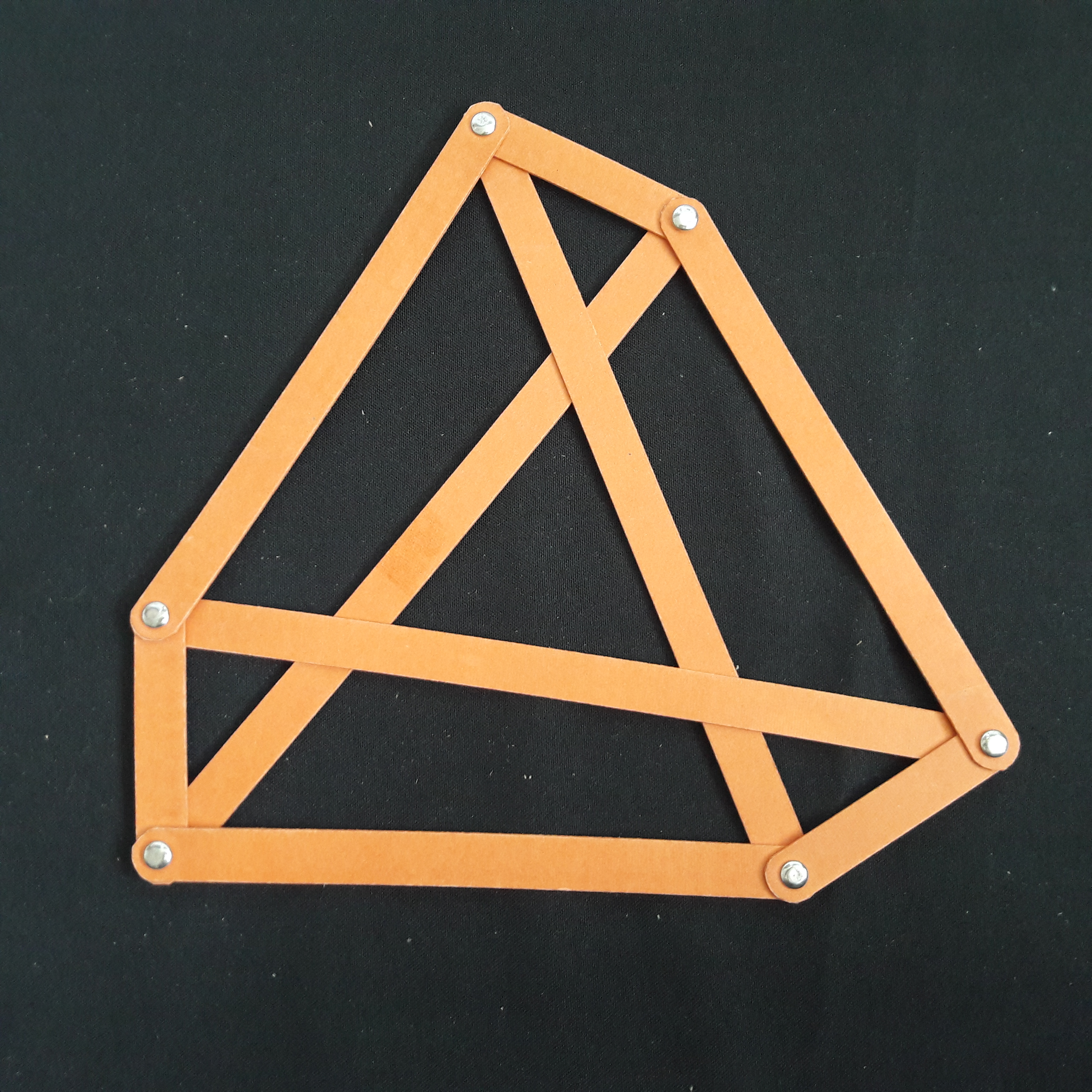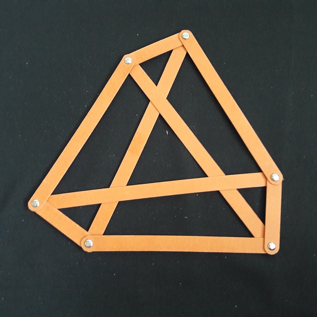 | Kippendes ebenes Sechseck mit drei Diagonalen. Durch "Kippen" in gespiegelte Lage zu bringen. |