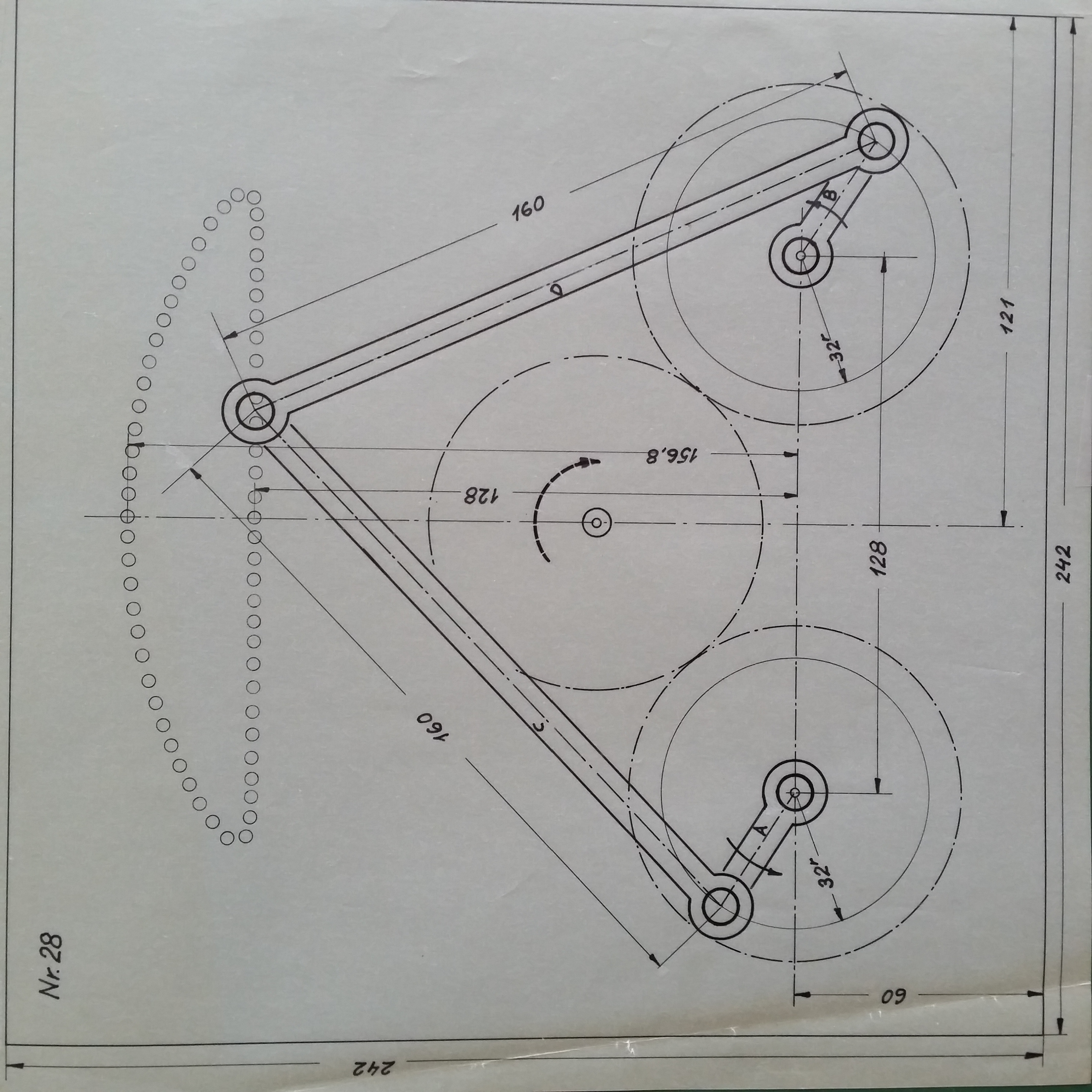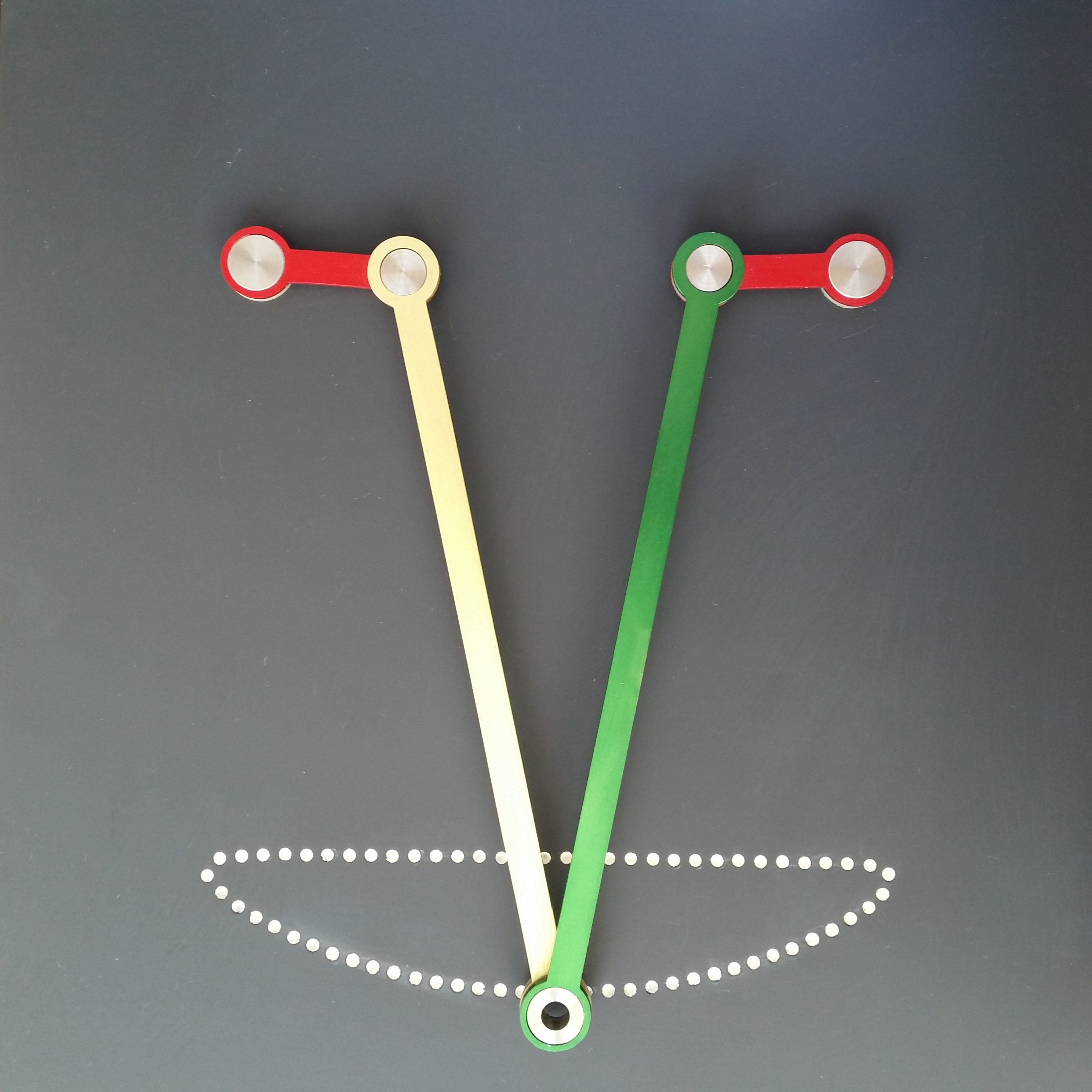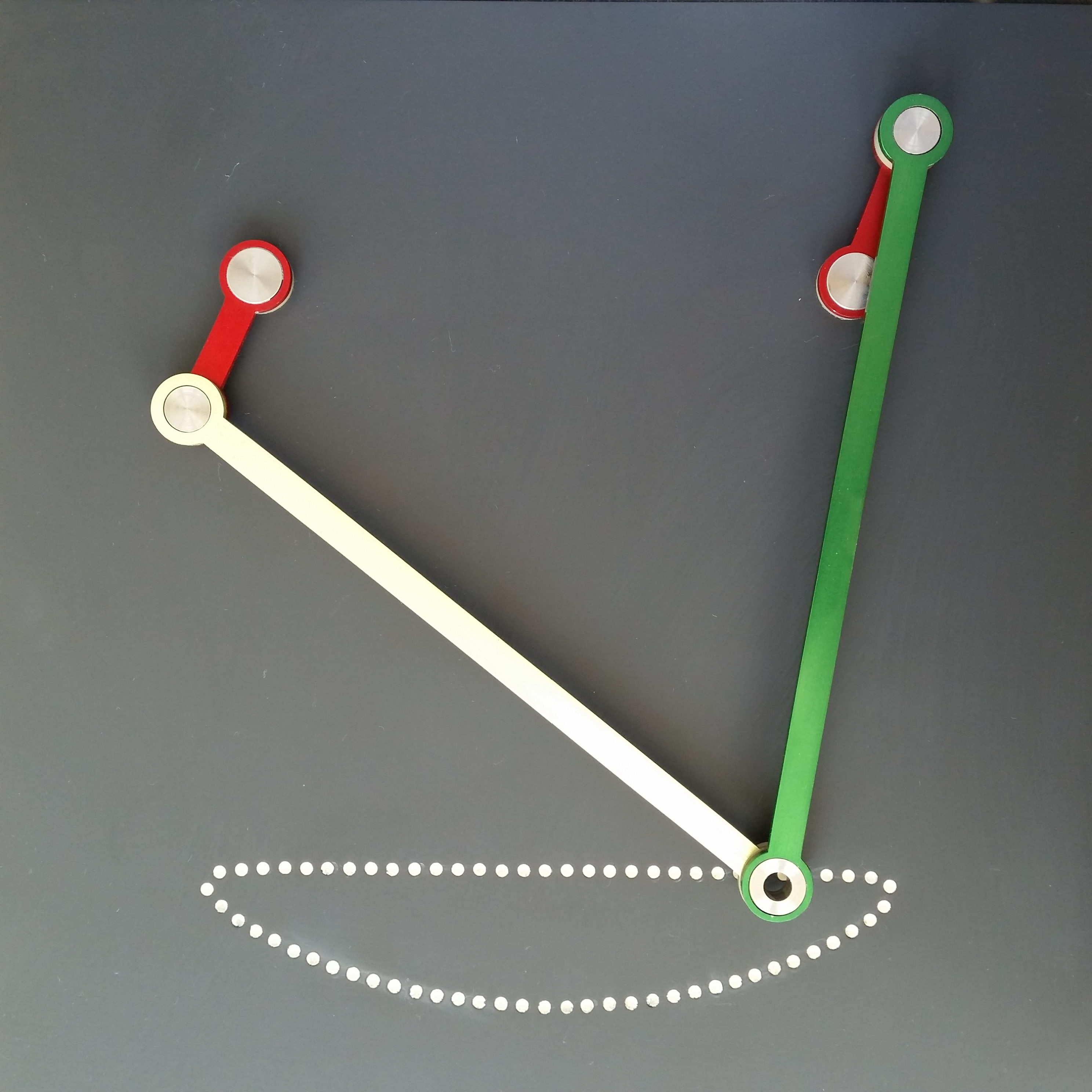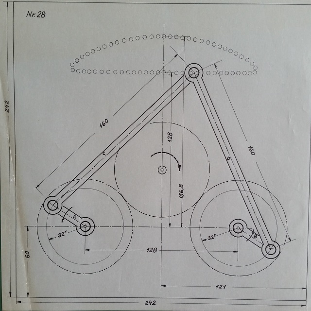 | Erzeugung einer Koppelkurve mit Hilfe von zwei gleichartig angetriebenen Kurbeln nach H. RANKERS. |
