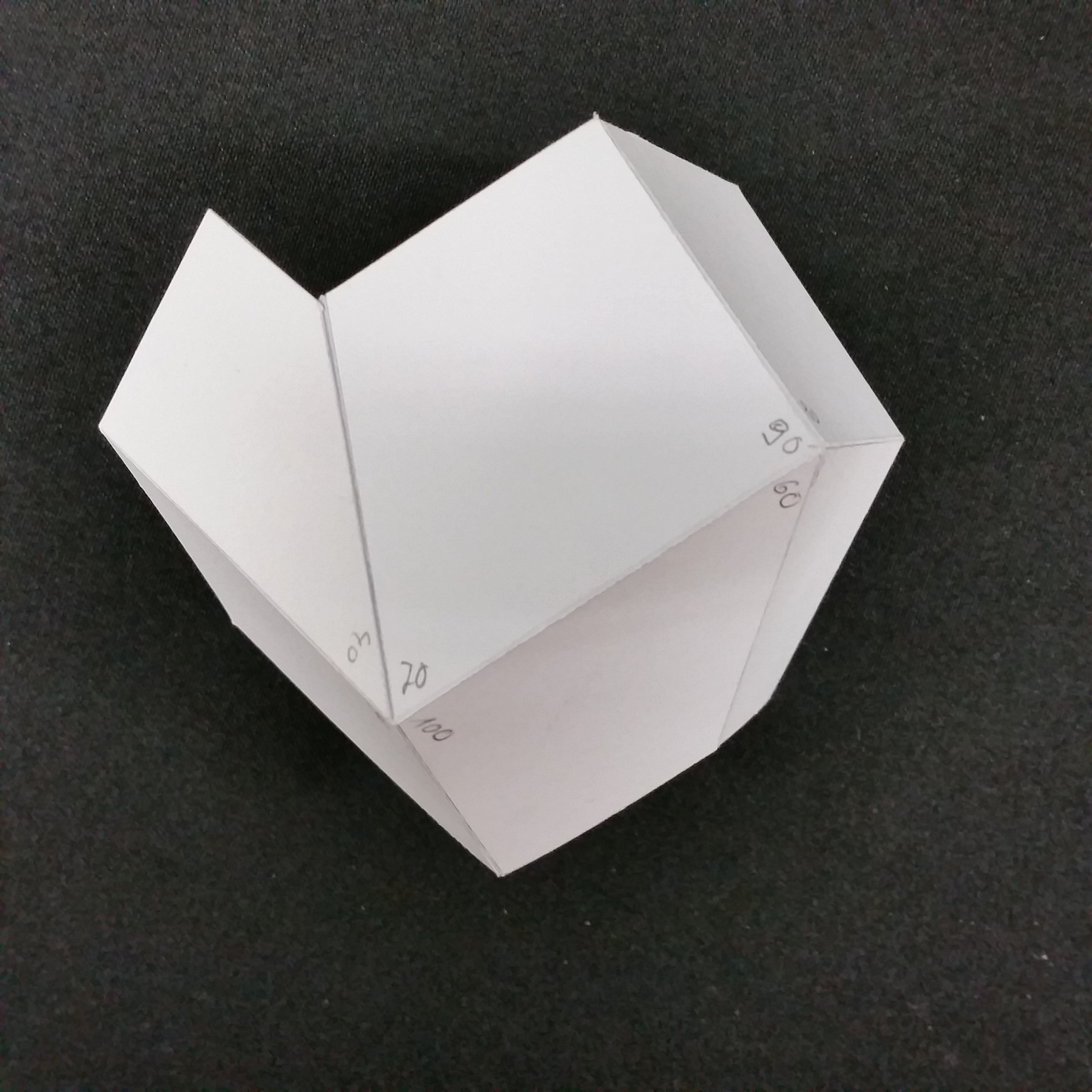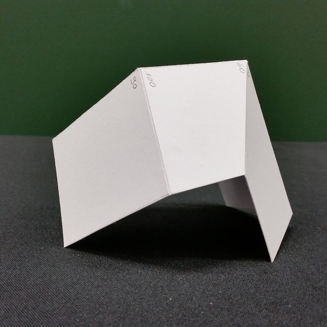 | Kartonmodell zweier gekoppelter sphärischer Vierstabgetriebe. |