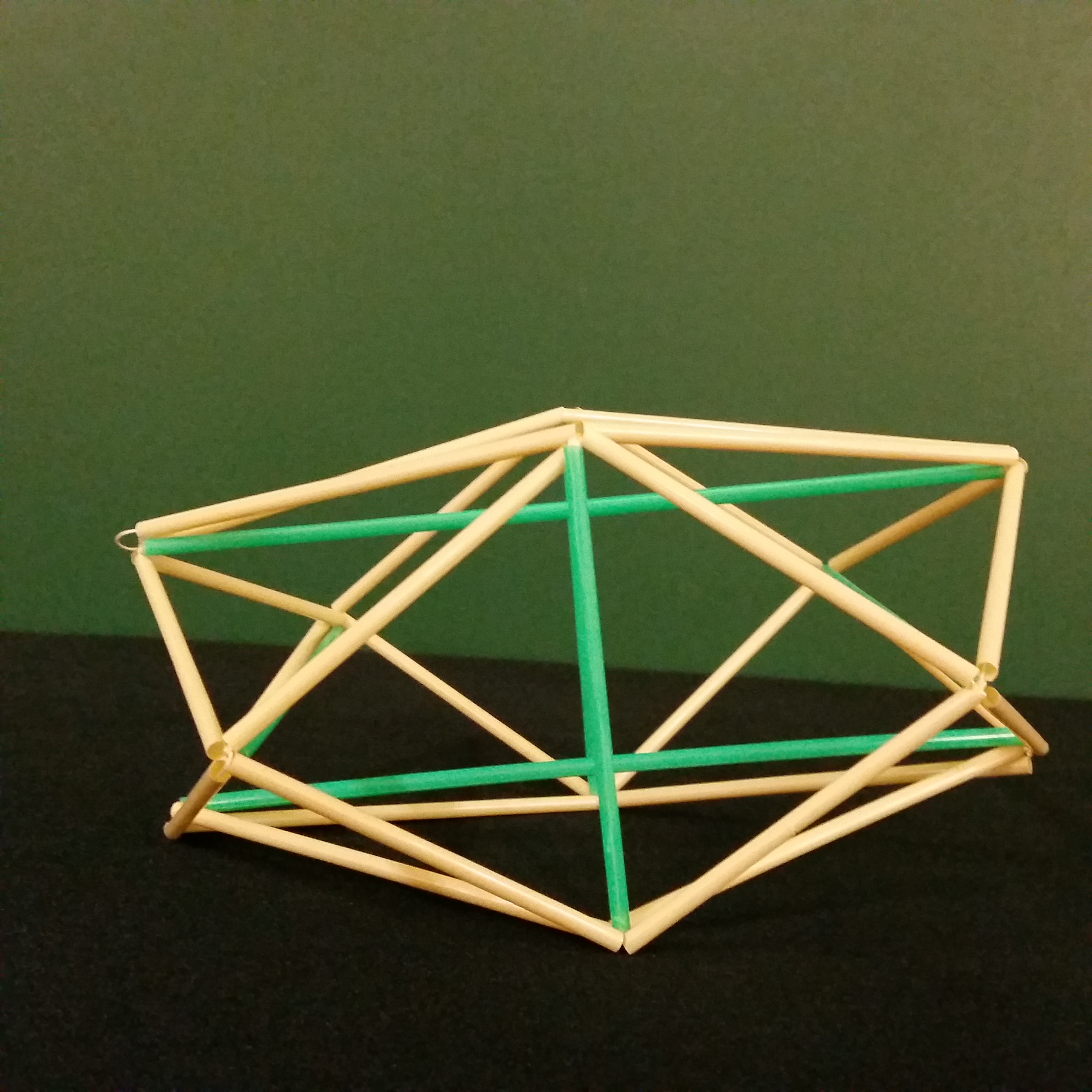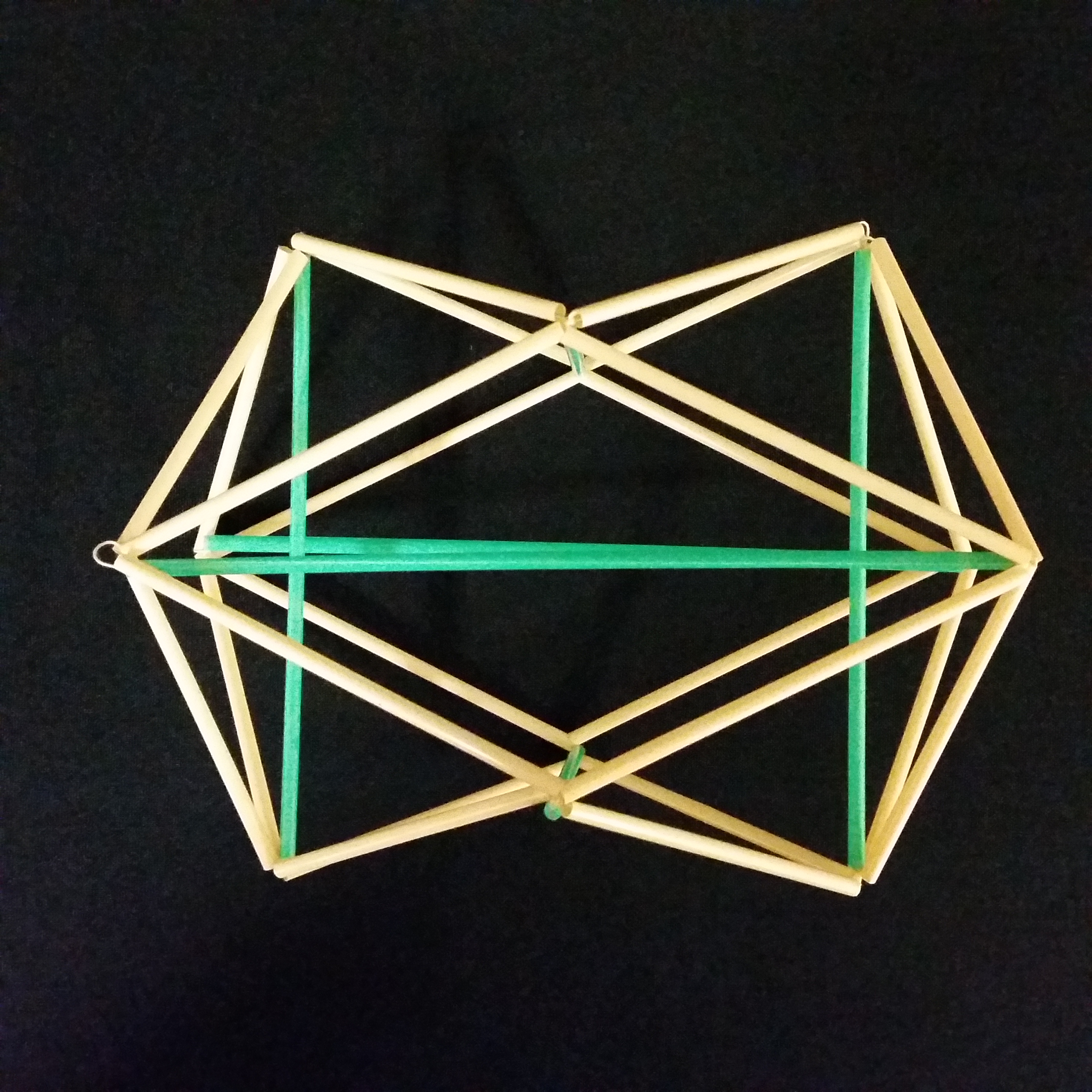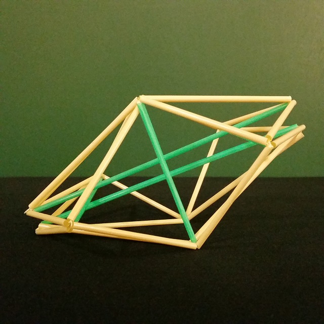 | Stabmodell eines kippenden Ikosaeders mit drei orthogonalen Symmetrieebenen. |