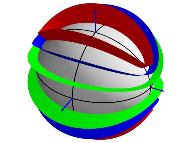 An ellipsoid and some one-sheeted hyperboloids are displayed.